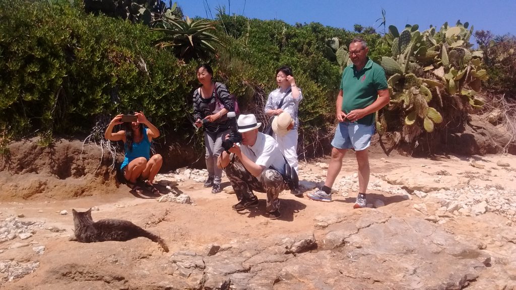 Una coppia di giapponesi, accompagnati da una guida turistica-interprete, questa mattina ha fatto visita all’Oasi Felina sarda di Su Pallosu.