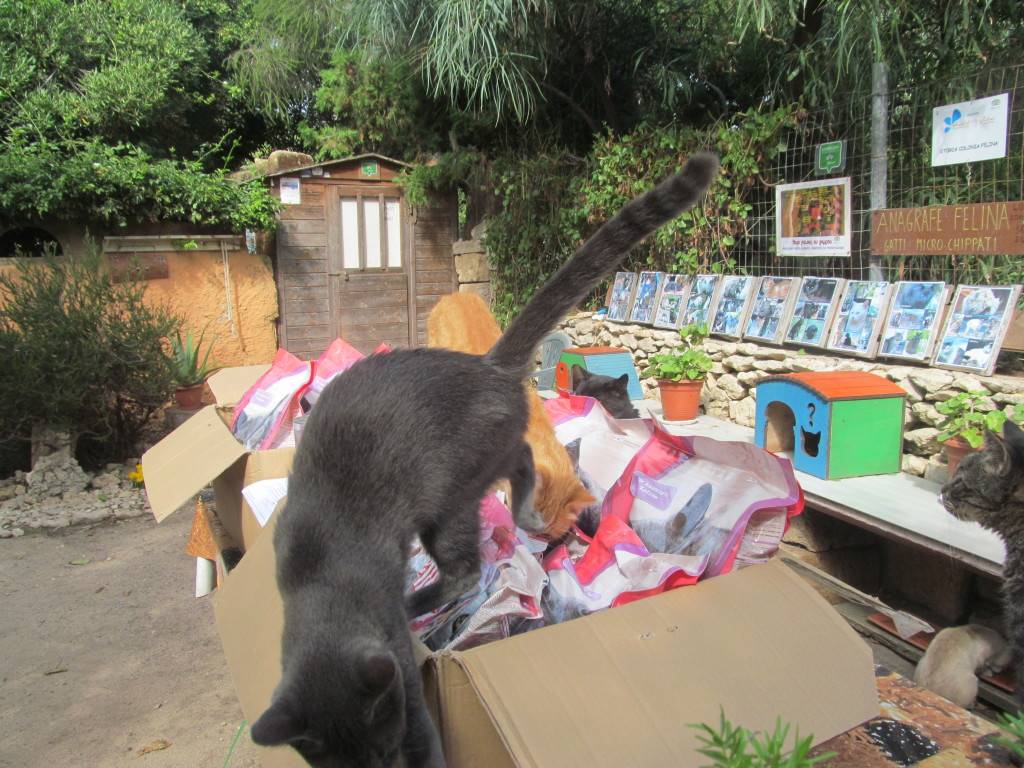In perfetta trasparenza, come è nostro costume, abbiamo speso i soldi di questa donazione interamente per la gestione dell’Oasi. Abbiamo acquistato-come vedete dalle foto- alimenti per i mici, un contributo concreto per la doppia alimentazione quotidiana e un box per ricovero gatti, utilissimo in caso di necessità di isolamenti dei felini per motivi di sicurezza o sanitari.
