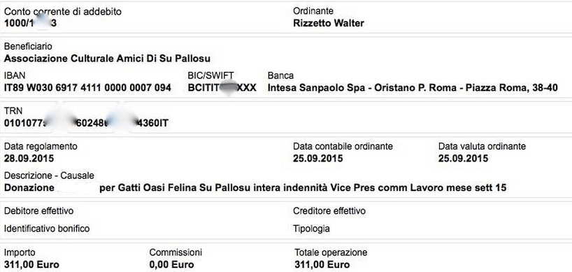 Ricordiamo che, come in questo caso, finalizzate alla gestione concreta dell’Oasi Felina, accettiamo ben volentieri donazioni di privati, anche di parlamentari, da qualunque gruppo o parte politica vengano.Tutti possono contribuire a sostenere ed aiutare l’Oasi Felina di Su Pallosu.