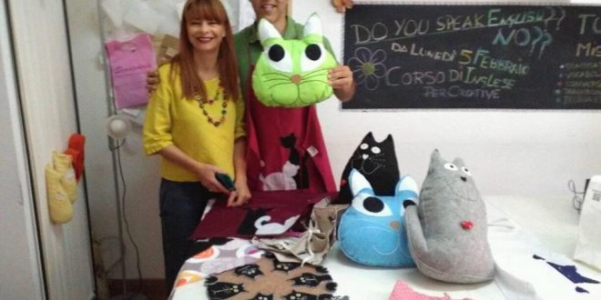 Pupazzi, cuscini, portachiavi, tutto ovviamente a tema gatto è stato interamente realizzato a mano con grande passione dalle allieve della Scuola artistica.