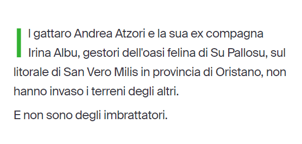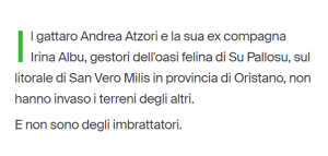 Nessuna invasione e deturpamento di terreni pubblici. Hanno vinto gatti e gattari ! Andrea Atzori, …