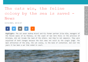 Nessuna invasione e deturpamento di terreni pubblici. Hanno vinto gatti e gattari ! Andrea Atzori, …