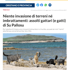 L’assoluzione dei gattari di Su Pallosu (Sardegna) da parte del Tribunale di Oristano, dalle infondate …