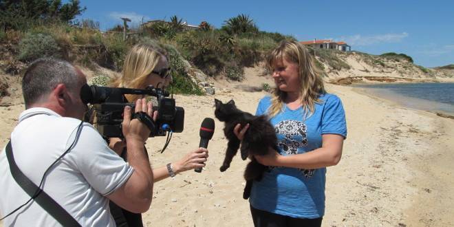 La gattara di Su Pallosu Irina Albu intervistata dalla giornalista Sabrina Pieragostini della redazione di Studio Aperto, Italia Uno per il programma Studio Life