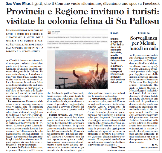 I Gatti di Su Pallosu, un vero e proprio "miracolo" di promozione turistica di un territorio sui media internazionali. Da dieci anni sono conosciuti in tutto il mondo: dal Giappone, alla Russia, Gran Bretagna, Stati Uniti.... Ecco perchè "fanno paura".