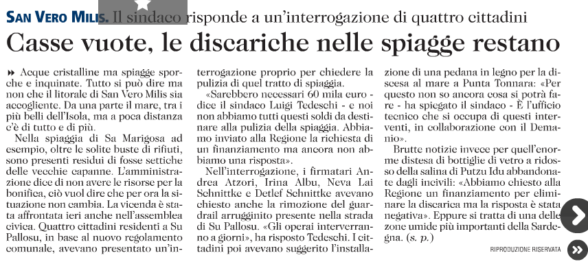 Il quotidiano L’Unione Sarda di qualche giorno fa-martedì 19 dicembre 2023, pag.35- in un articolo …