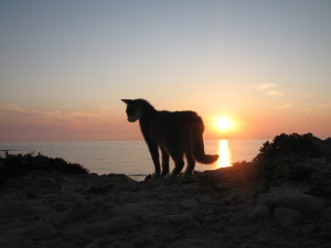 Vuoi assistere all’alba felina di Su Pallosu? Vedere il sole sorgere con il gatto ciccione …