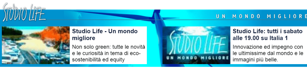 Studio Life è il magazine di Italia Uno, dedicato all’ambiente.