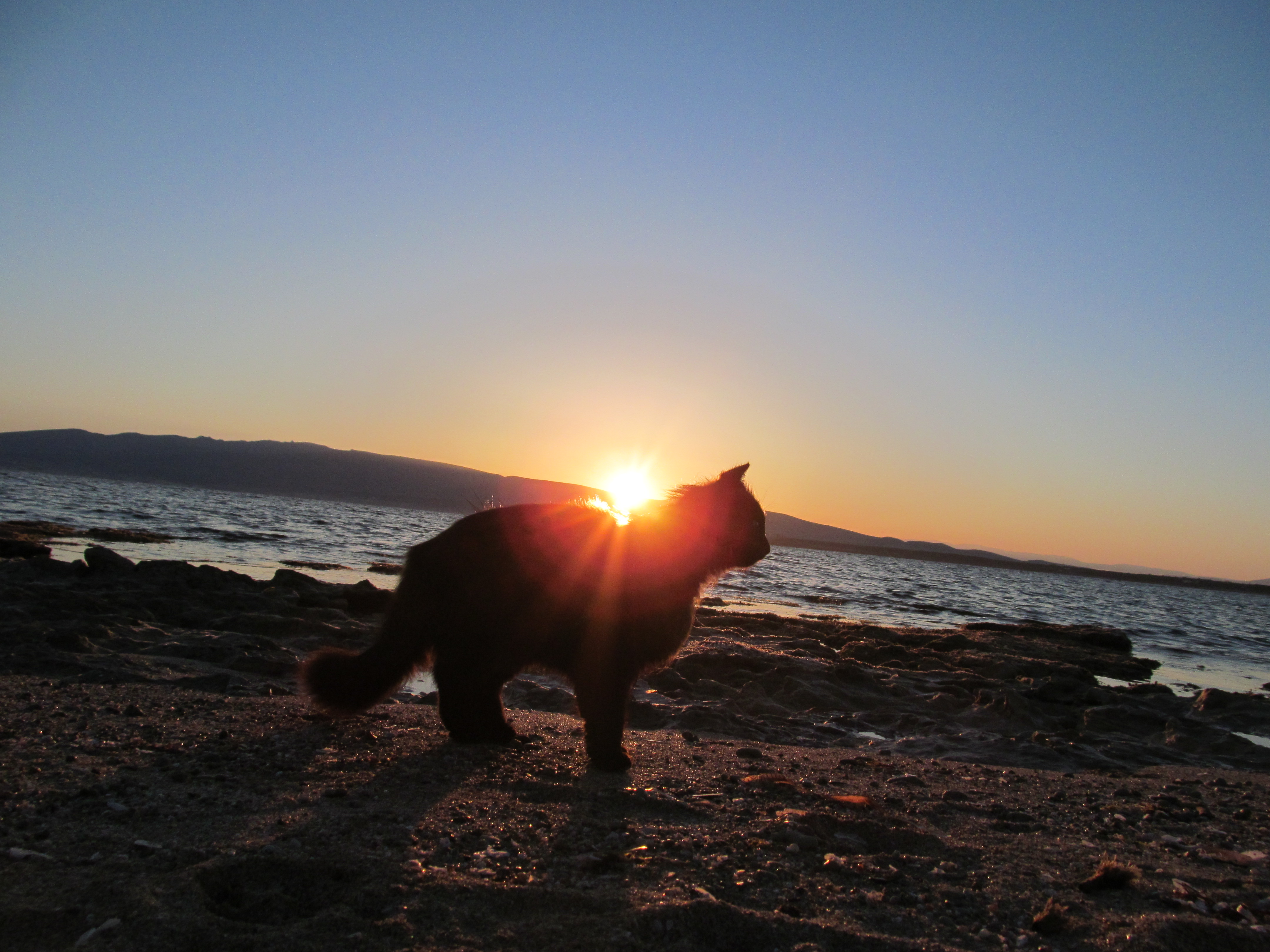 Vuoi assistere all’alba felina di Su Pallosu? Vedere il sole sorgere con il gatto ciccione …