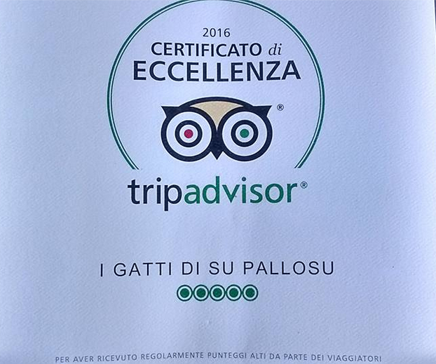 Nel 2016 lo ricordiamo i Gatti di Su Pallosu hanno ottenuto il Certificato di Eccellenza Turistica di Tripadvisor-autorevole portale internazionale di viaggi e sono la prima attrazione del territorio del Comune di San Vero Milis.