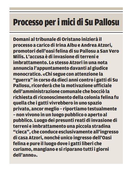 Stesso giorno articolo sul quotidiano La Nuova Sardegna