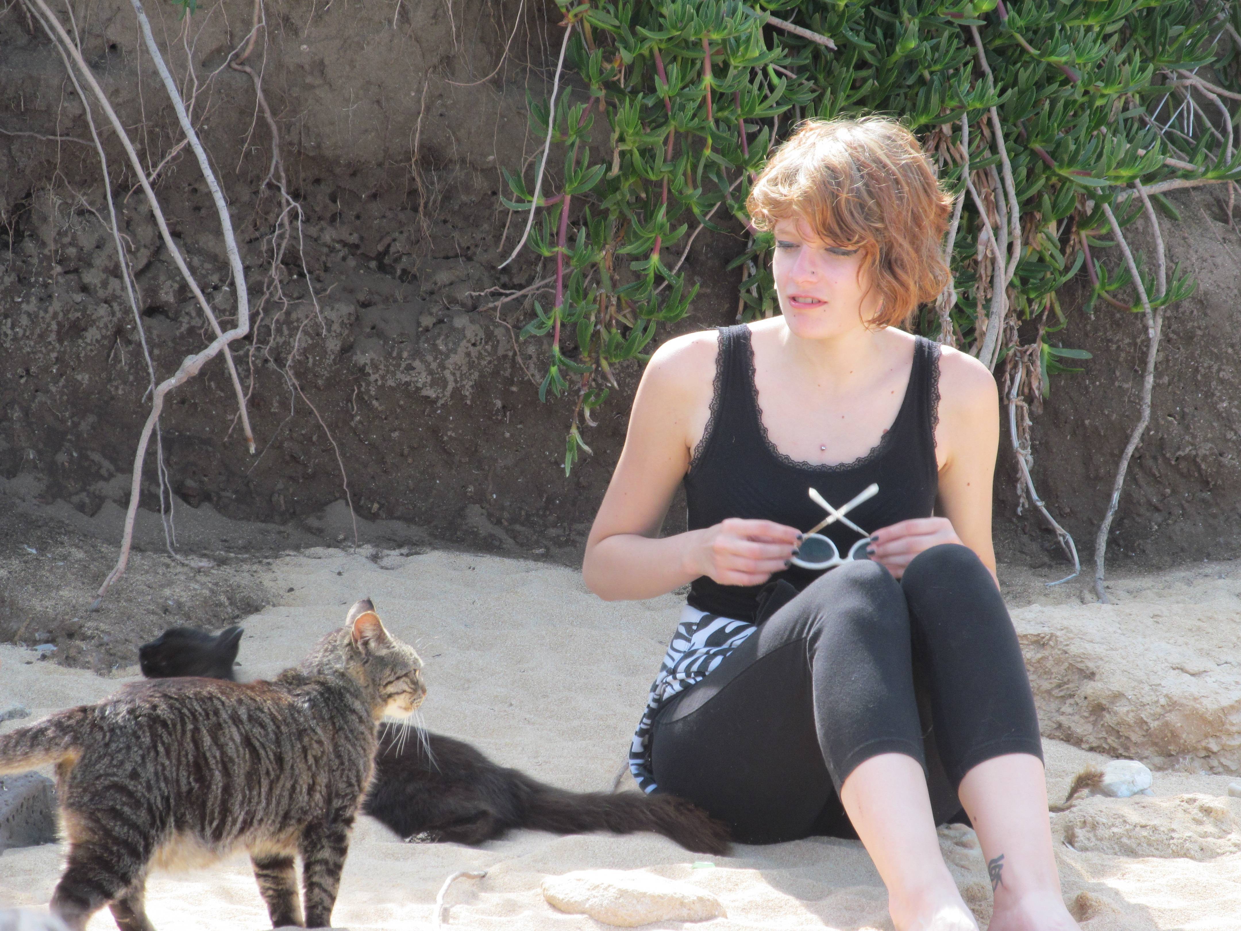 Un’escursionista ammira il gatto Lello di Su Pallosu
