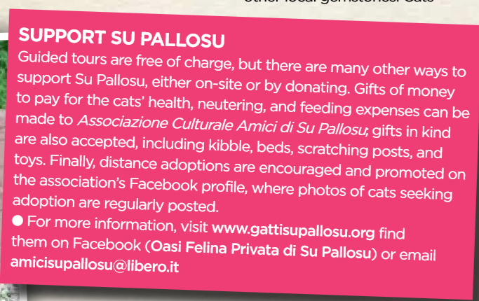 Your Cat Magazine, https://www.yourcat.co.uk/ la più venduta rivista inglese dedicata ai gatti, ha dedicato nel suo ultimo numero mensile due dettagliate pagine (con intervista) all’Oasi Felina di Su Pallosu e sulla Casa Museo Gianni Atzori.