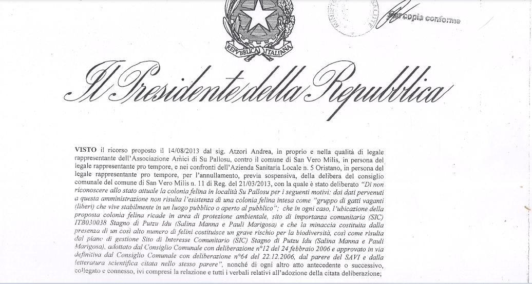 Nessuna invasione e deturpamento di terreni pubblici. Hanno vinto gatti e gattari ! Andrea Atzori, …
