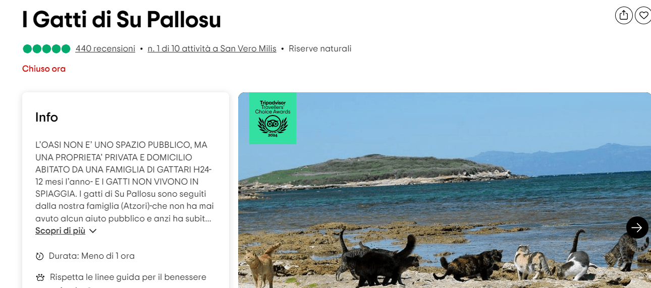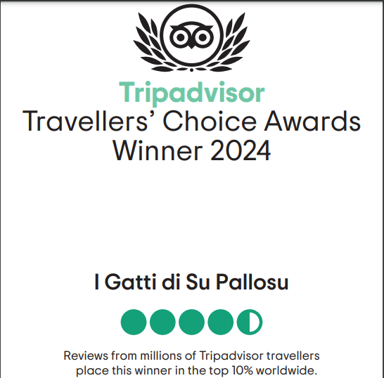 Il 3 luglio ci è stato inviato per email il Certificato-qui sopra- il 26 giugno 2024, Tripadvisor aveva anticipato il Premio Traveller’Choice, pubblicando il logo nella nostra pagina, sul mega portale di viaggi https://www.tripadvisor.it/Attraction_Review-g1238433-d7088002-Reviews-I_Gatti_di_Su_Pallosu-San_Vero_Milis_Province_of_Oristano_Sardinia.html