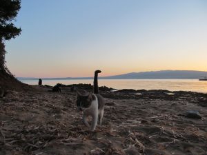Vuoi assistere all’alba felina di Su Pallosu? Vedere il sole sorgere con il gatto ciccione …