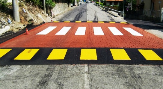 tre attraversamenti pedonali rialzati con relativi dossi-rallentatori e relativi attraversamenti pedonali semplici sulla stessa via;