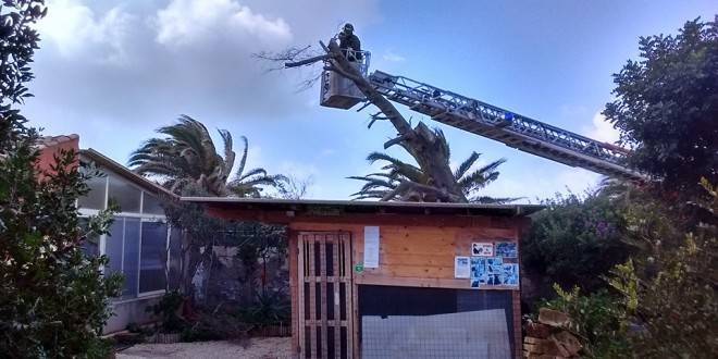 Su Pallosu, maestrale fa crollare un albero su infermeria dell’Oasi, gatta salvata e intervento dei vigili del fuoco