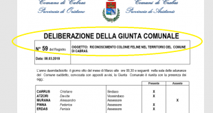 Colonie Feline: verso i 100.000 riconoscimenti in Italia; ultimi tre a Cabras, qui informazioni e moduli per gattari…
