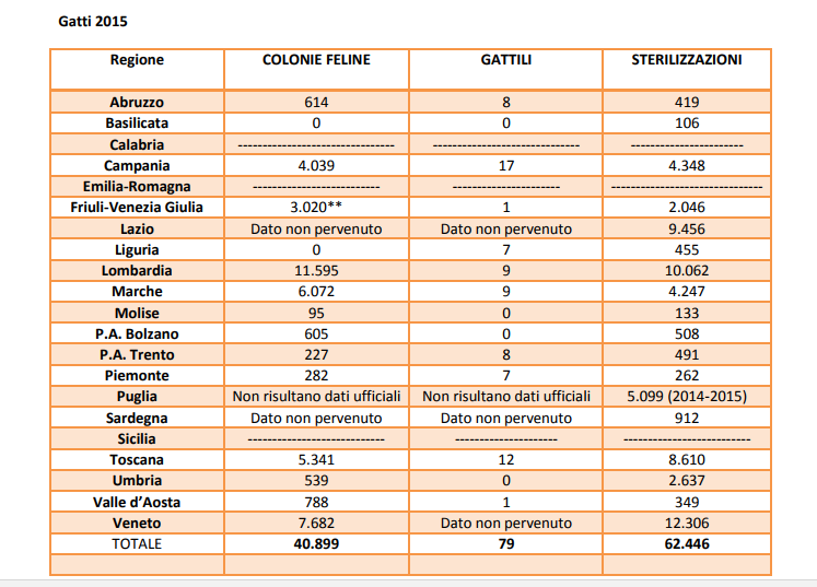 Italia: oggi stimate 70.000 colonie feline riconosciute nel 2018