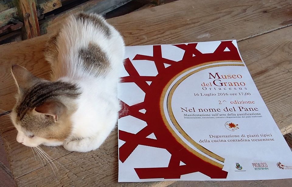 Rocco è un micio meticcio e trovatello, salvato dai soci della Cooperativa Su Corongiu di Ortacesus che all’inizio dell’estate 2014 lo hanno trovato dentro una busta, con altri gattini, abbandonata all’interno dell’area archeologica di Mitza de Siddi. Dell’intera nidiata, solo Rocco si è salvato. Oggi il micio è la mascotte ufficiale del Museo del Grano di Ortacesus.