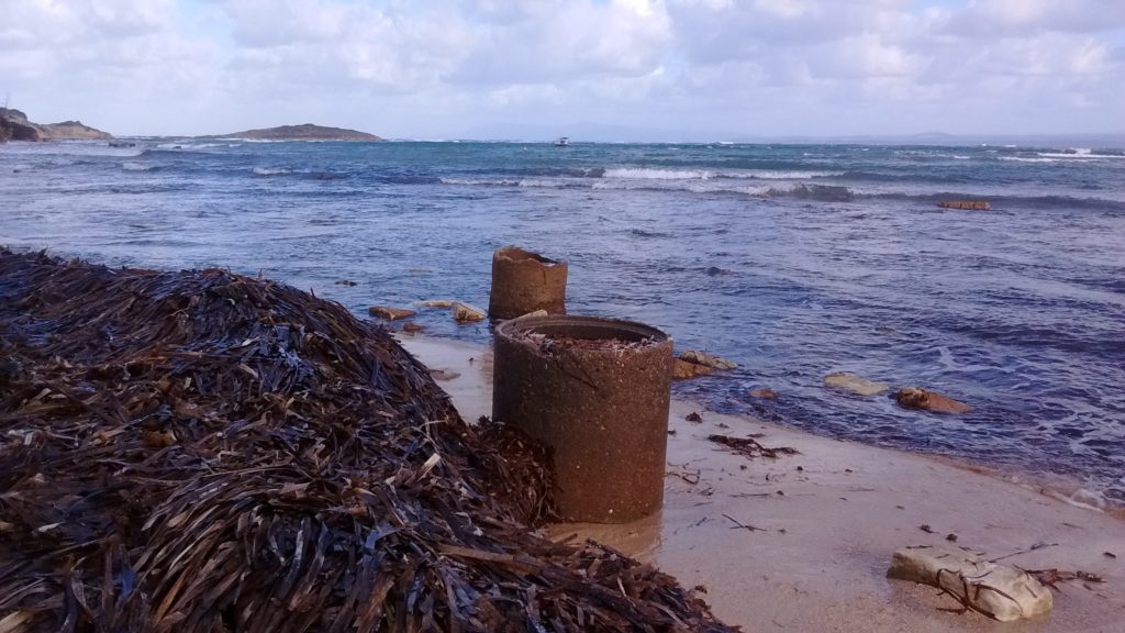 2- Rimozione da spiaggia e bagnasciuga da Sa Marigosa a Su Pallosu di una decina di inutilizzate parti di fosse settiche delle ex capanne (abbattute tra gli anni 80/90), che appaiono come indecorosi, pericolosi detriti in grossi tubi circolari in cemento ;