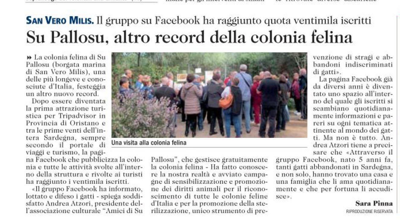 In questi anni il gruppo Facebook “Amici dei gatti di Su Pallosu” ha informato, lottato, difeso i gatti di Su Pallosu e non solo. Abbiamo strenuamente agito per la permanenza di una colonia storica e amata dai cittadini, messa in discussione da trame segrete affondate assieme ai pochi che le avevano ordite. Grazie a questo gruppo abbiamo fatto conoscere la nostra realtà, avviato campagne di sensibilizzazione e promozione dei diritti animali: per il riconoscimento di tutte le colonie feline italiane e per la promozione della sterilizzazione, senza se e senza ma, quale unico strumento di prevenzione di stragi e abbandoni di gatti.